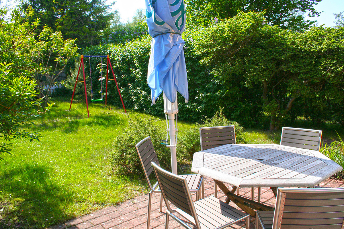 Das Haus liegt ruhig, zentral. Strand und Gaststätten und Einkaufsmöglichkeiten sind gut fußläufig zu erreichen. Kleiner netter Garten mit Terrasse, der etwas Pflege vertragen könnte. Bei den Kunststoffstühlen der Terrassenmöbel ist teilweise die Lehne und die Sitzfläche angebrochen. Die Sitzauflagen sollten dringend ausgetauscht werden (sie sind eingerissen und schmutzig)