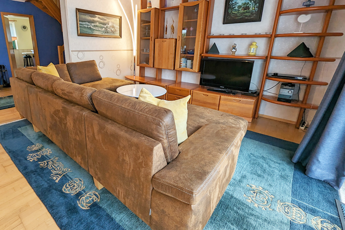 Das Haus ist großzügig. Die Einrichtung ist allerdings in die Jahre gekommen, aber bequem und gepflegt. Das in das kleine Schlafzimmer integrierte Bad im 1. OG ist sehr praktisch, aber es ist sehr eng und ausgesprochen uneffektiv eingerichtet. Wir hatten keine Möglichkeit unsere Duschhandtücher innerhalb des Bades aufzuhängen, weil die Haken einfach zu niedrig angebracht waren. Die Utensilienablage in Form eines kleinen Regales in der Ecke zwischen Dusche und WC, direkt unterhalb der Dachschräge ist äußerst unpraktisch. Ab einer Größe über 180 cm sollte man dieses Bad nicht nutzen (steile Dachschräge, Toilette unterhalb der Dachschräge). Sich den Kopf zu stoßen ist vorprogrammiert. Die Nachttischlampe rechts funktionierte nicht. Im großen Schlafzimmer im 1. OG ist eine der Matratzen durchgelegen (Kuhle) und verursachte leider Rückenschmerzen. Das angebotene WLAN funktionierte nur in der Küche und manchmal, wenn man Glück hatte, auch im Wohnzimmer. Es gab keinen Radioempfang. Die Dusche im EG hat einen deutlichen Schimmelbefall. Eine Reinigung oder Ausbesserung der Stellen wäre sicherlich angebracht. Als wir von den sehr netten Damen beim Empfang den Schlüssel übernahmen, war es bereits 14 Uhr. Als wir am Haus ankamen, war die Reinigungsfirma gerade eingetroffen und hatte noch nicht begonnen. Wir erhielten die Auskunft, dass es ca. 1,5 bis 2 Stunden dauern würde. Das fanden wir schon etwas ärgerlich. Nun ja – die Endreinigung dieses Hauses zu zweit in dieser Zeit ist dann auch entsprechend ausgefallen. Wir hätten es schon gerne gründlicher gehabt, zumal die Endreinigung 100 € pro Anmietung kostet. Das war schnell verdientes Geld.