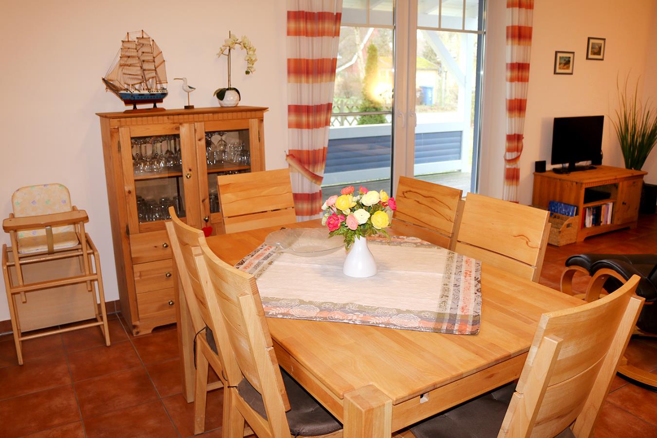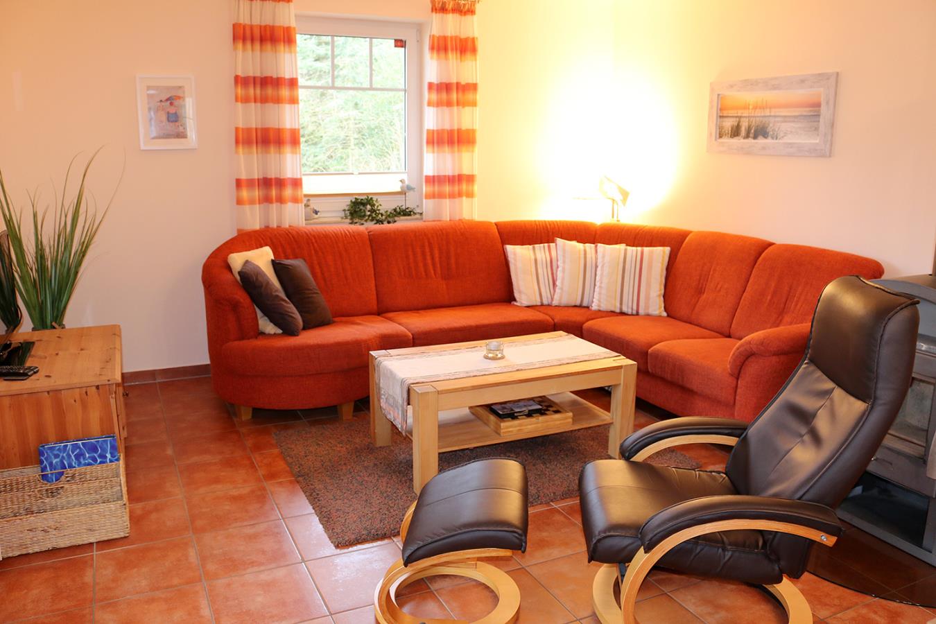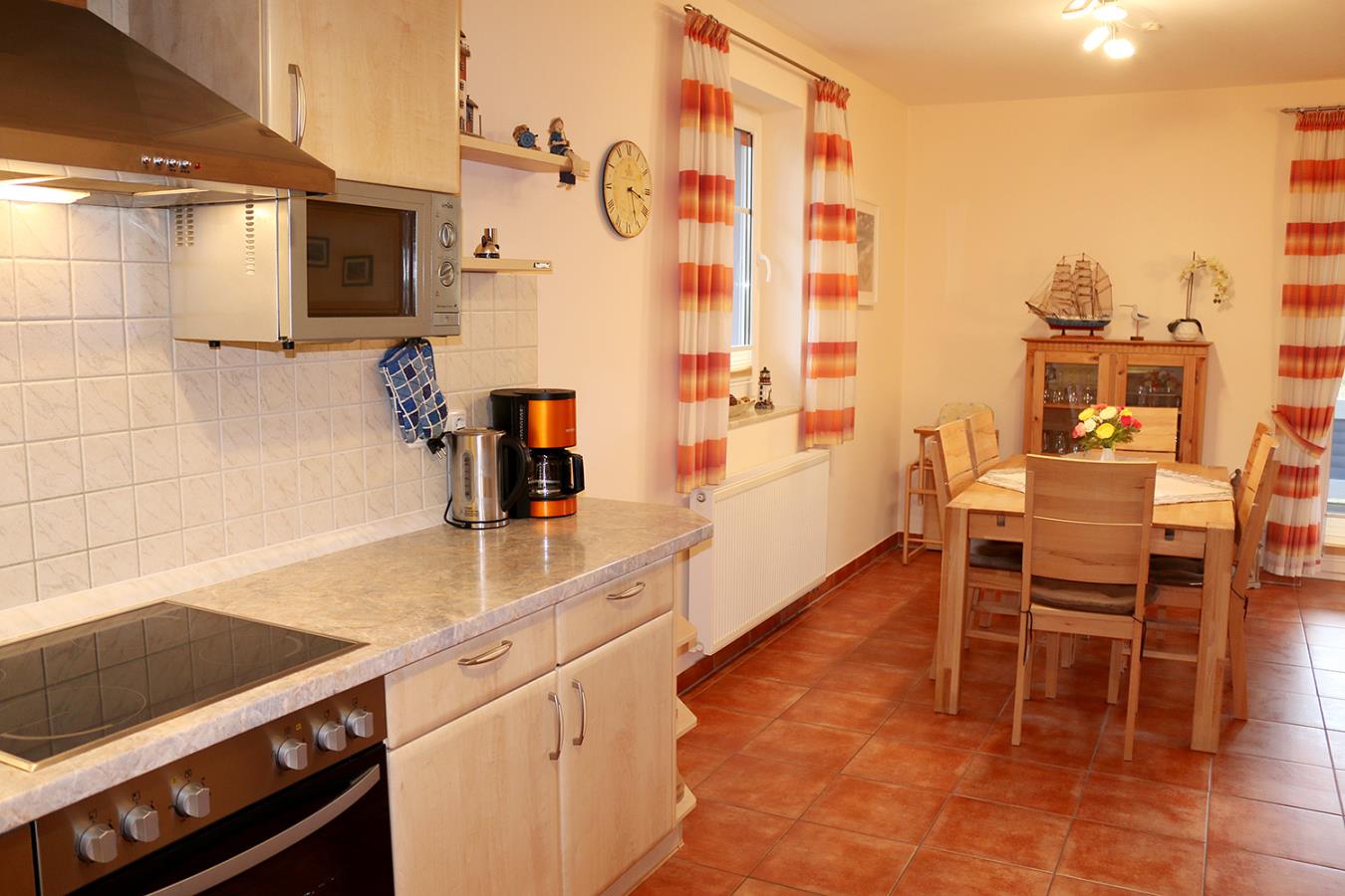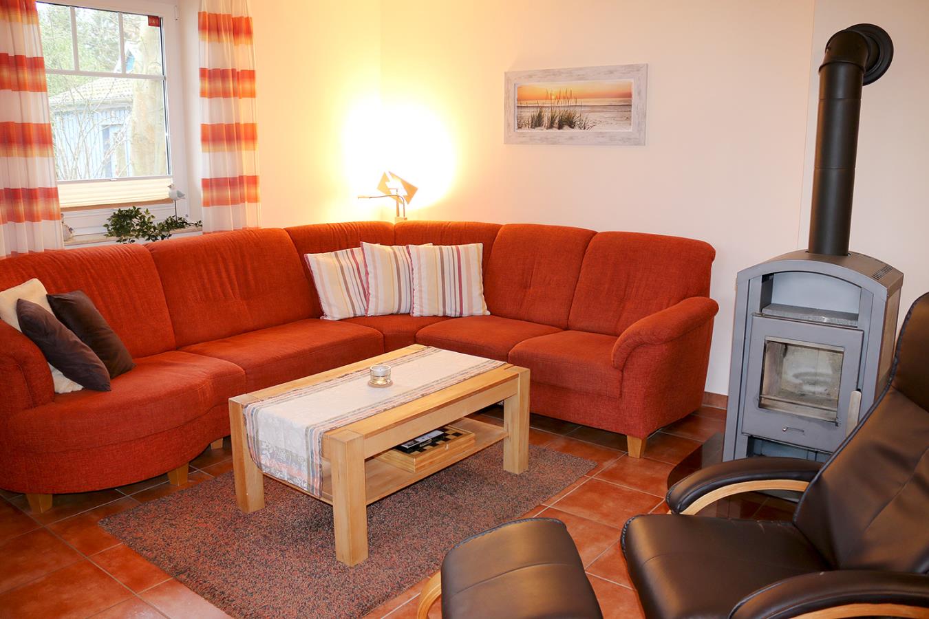 Das Ferienhaus Küstenwind ist mit 90 qm Wohnfläche für 4 Personen + 1 Kleinkind bestens geeignet. Der Wohnbereich ist komfortabel eingerichtet und gemütlich gestaltet. Für zusätzliche Behaglichkeit sorgen ein Kamin und die große Couchecke. Im Küchenbereich finden Sie alles, was Sie zum Kochen benötigen. Der große Esstisch bietet genug Platz für ein ausgiebiges Essen. Es gibt zwei Bäder im Erdgeschoss, eins mit Dusche und WC und ein Gäste-WC. Im Hauswirtschaftsraum gibt es nochmals genügend Stauraum und eine Waschmaschine.