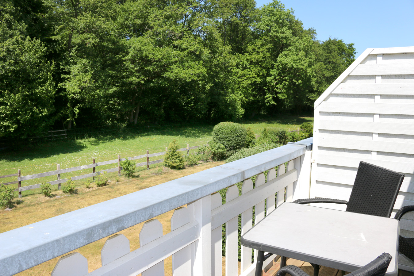 Die Wohnung verfügt über einen möblierten Balkon mit schönem Blick auf den Darßer Wald.